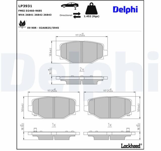 DELPHI Sada brzdových platničiek kotúčovej brzdy DELPHI LP3931 (LP3931)